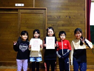 全校集会で、『朝のラジオ体操会』参加者の中で、特に参加率が高かった児童に『超がんばり賞』の表彰を行いました。