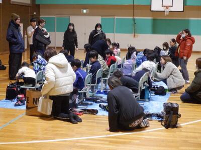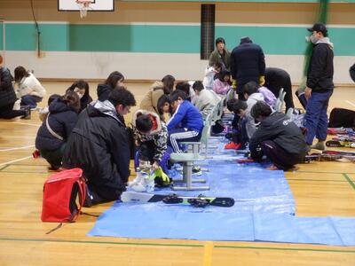 また、今日は、11時頃から1年生保護者の皆さんの力をお借りし、1年生のスキー学習に向けたスキー道具セッティングの作業も行いました。ご協力ありがとうございました。