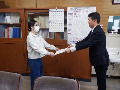 今日(1月27日)は、『絆づくりメッセージコンクール表彰式』があり、北海道教育庁宗谷教育局より 笠井局長様 千代義務教育指導監様におこしいただきました。