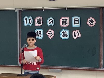 今年度最後の学年ごとの参観懇談が始まりました。今日は4年生です。『10歳の節目を祝う集い』が行われていました。