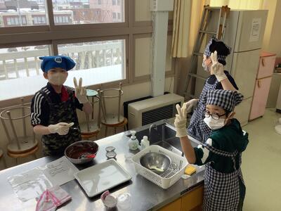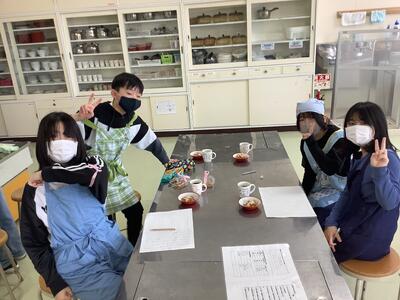 5年生が『一緒にリラックスタイム』と言う家庭科の学習で調理実習(デザートづくり)を行っていました。