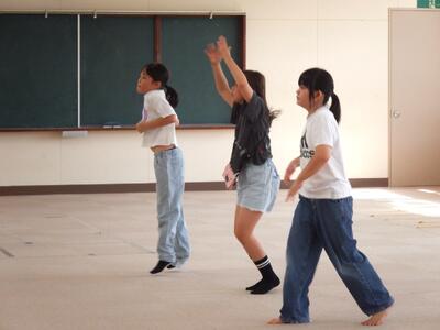 2校時目に3年生がダンス『リビング・イン・カラー』(東京ディズニーリゾートの40周年を祝うテーマソング)の練習をしていました。