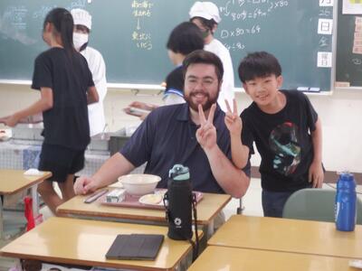 今日は、カイ先生が来て、ALT学習も行われました。給食は5年生と過ごしていました。