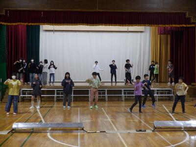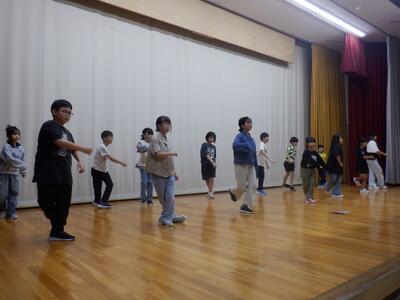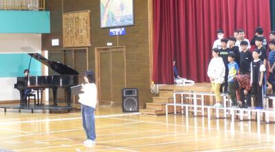 6校時目には、4年生が「ありがとうの花」(合唱)と「Carrying Happiness」(ダンス)の練習をしていました。