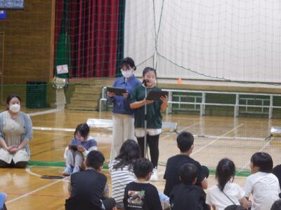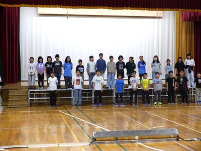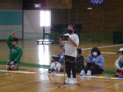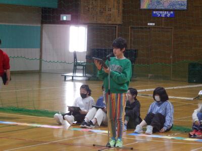 先日選ばれた後期児童会役員が、全校の前で、初めて進行・発表・挨拶を行いました。