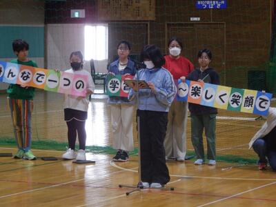 この日は、学習発表会のスローガン発表。