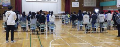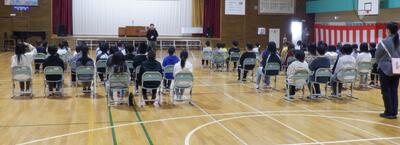 今日は、在校生練習(本校は、3年生以上が式に参加)がありました。